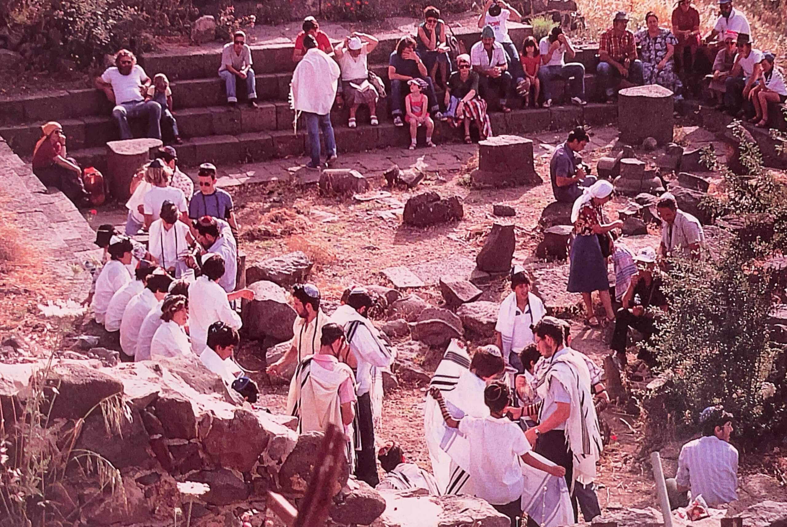 Bar Mitzvah ceremony of the children of the Golan settlements at the ancient synagogue. From the book “GAMLA – A CITY IN REBELLION”, SHMARYA GUTMAN, 1994.